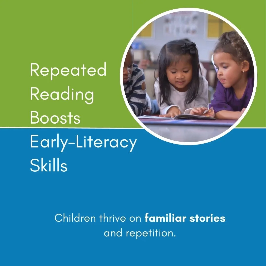 Repeated readings of the same story boost vocabulary and comprehension.